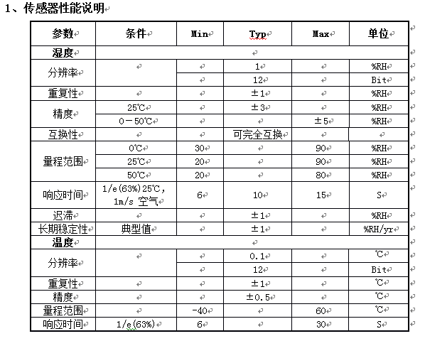 測量分辨率分別為12bit(溫度)、12bit(濕度)