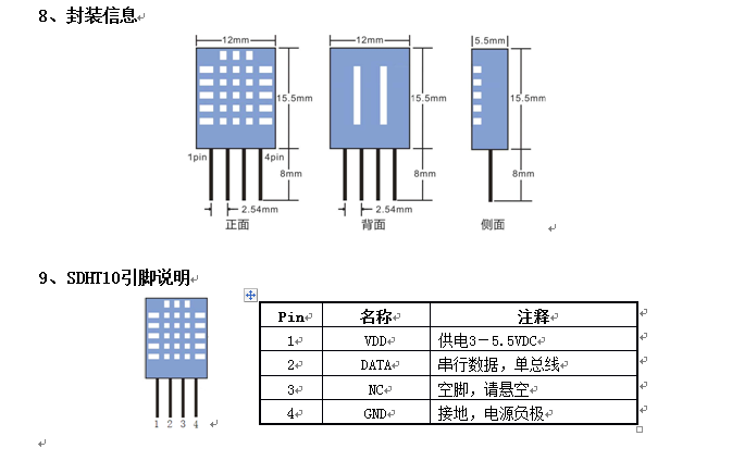 SDHT10數(shù)字溫濕度傳感器是一款含有已校準(zhǔn)數(shù)字信號輸出的溫濕度復(fù)合傳感器。它應(yīng)用專用的數(shù)字模塊采集技術(shù)和溫濕度傳感技術(shù),確保產(chǎn)品具有極高的可靠性與卓越的長期穩(wěn)定性。傳感器包括一個電阻式感濕元件和一個NTC測溫元件,并與一個高性能8位單片機(jī)相連接。因此該產(chǎn)品具有品質(zhì)卓越、超快響應(yīng)、抗干擾能力強(qiáng)、性價比極高等優(yōu)點(diǎn)。每個SDHT10傳感器都在極為精確的濕度校驗(yàn)室中進(jìn)行校準(zhǔn)。校準(zhǔn)系數(shù)以程序的形式儲存在OTP內(nèi)存中,傳感器內(nèi)部在檢測信號的處理過程中要調(diào)用這些校準(zhǔn)系數(shù)。單線制串行接口,使系統(tǒng)集成變得簡易快捷。超小的體積、極低的功耗,且可長距離通訊,使其成為各類應(yīng)用甚至最為苛刻的應(yīng)用場合的最佳選則。產(chǎn)品為4 針單排引腳封裝。連接方便,特殊封裝形式可根據(jù)用戶需求而提供。